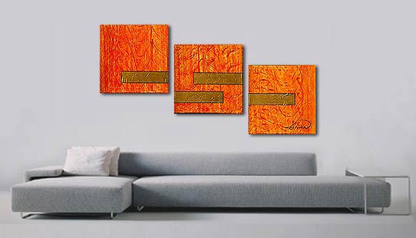 insgesamt 150 x 50 cm, Acryl auf Leinwand, Farben: Orange, Rot,