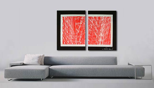 Titel: "Z - kill bill rot" 3x 60 x 80 cm, insgesamt 120 x 80 cm, Acryl auf Leinwand, Farben: Schwarz, Weiß, Rot, Silber.